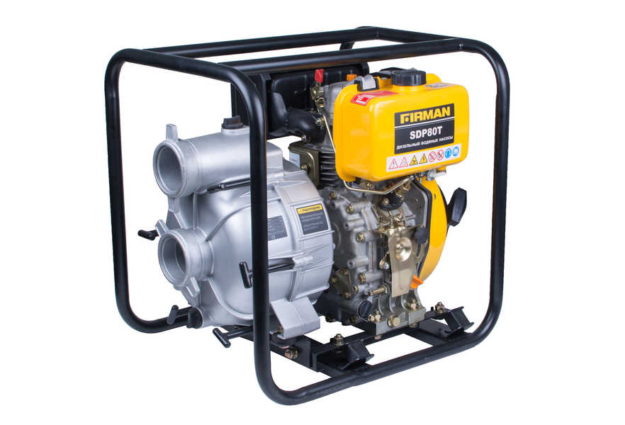 Мотопомпа FIRMAN SDP80T, дизельная, для грязной воды, высота подъема/всасывания 31/8 м, производительность 60 м.куб/ч, вх/вых диаметр 80 мм (3"), ручной пуск